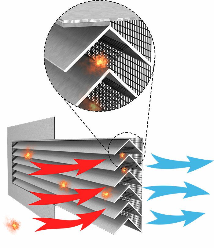 - Exceptional Air Flow Factor: MGV products facilitate one of the best ventilation efficiencies by acting as a solid guard against radiant heat and flying burning particles, ensuring a stable indoor environment. If the surrounding temperature goes above specified readings, the intumescent elements expand to block the air supply to the endangered area and help extinguish burnings particles.